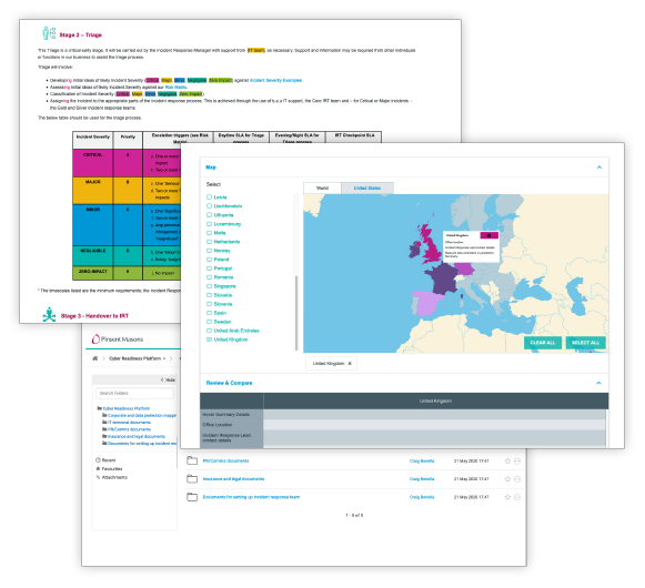 Cyturion bietet eine interaktive Weltkarte, die einen Überblick über die regulatorischen Anforderungen in der jeweiligen Jurisdiktion, in der Ihr Unternehmen tätig ist, gibt und aus der Ihre Notfallkontakte unmittelbar hervorgehen.