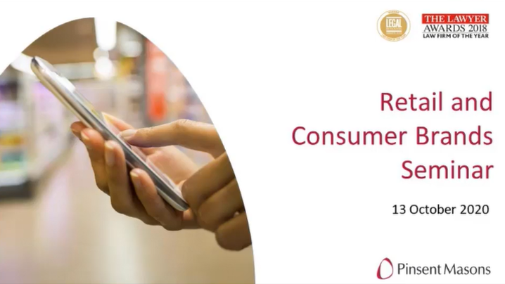 The Pinsent Masons annual Retail and Consumer Brands seminar which this year will be taking place on-line. Our team of specialists will be discussing key issues for retailers and brand owners as the industry continues to adapt to the huge disruption caused by Covid-19.